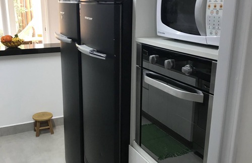 Full kitchen and laundry area with everything you need for your day to day. It also has a ground floor suite with double bed, wardrobe, mosquito screen and ceiling fan; for the privacy of teenagers and very useful for seniors. The house has two parking spaces, and in front of the condo + 8 parking spaces.