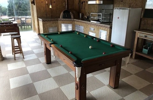Large enclosed balcony with glass, stainless steel barbecue, Pizza Oven, Pool Table, Foosball Table, 4-seater outdoor sofa, 6-seater balcony table + 6-seater outdoor table + 2.5 m sideboard + 3 hammocks for resting.