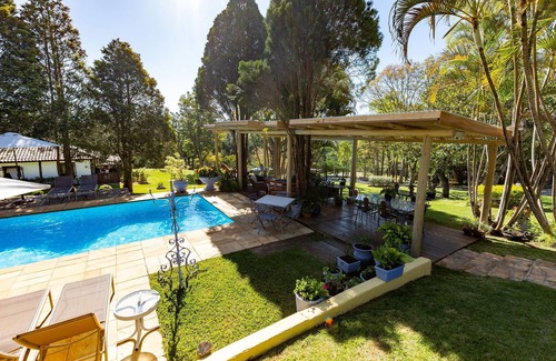 It offers swimming pool, sauna, tennis court and barbecue area. You can also go horseback riding through a region rich in natural beauty or take trails in the native preserved forest.